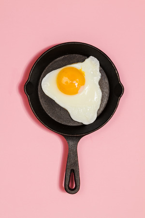 美しいおいしいおしゃれなピンクの背景の上で卵の目玉焼き ミニマルなコンセプト 平面図です の写真素材 画像素材 Image